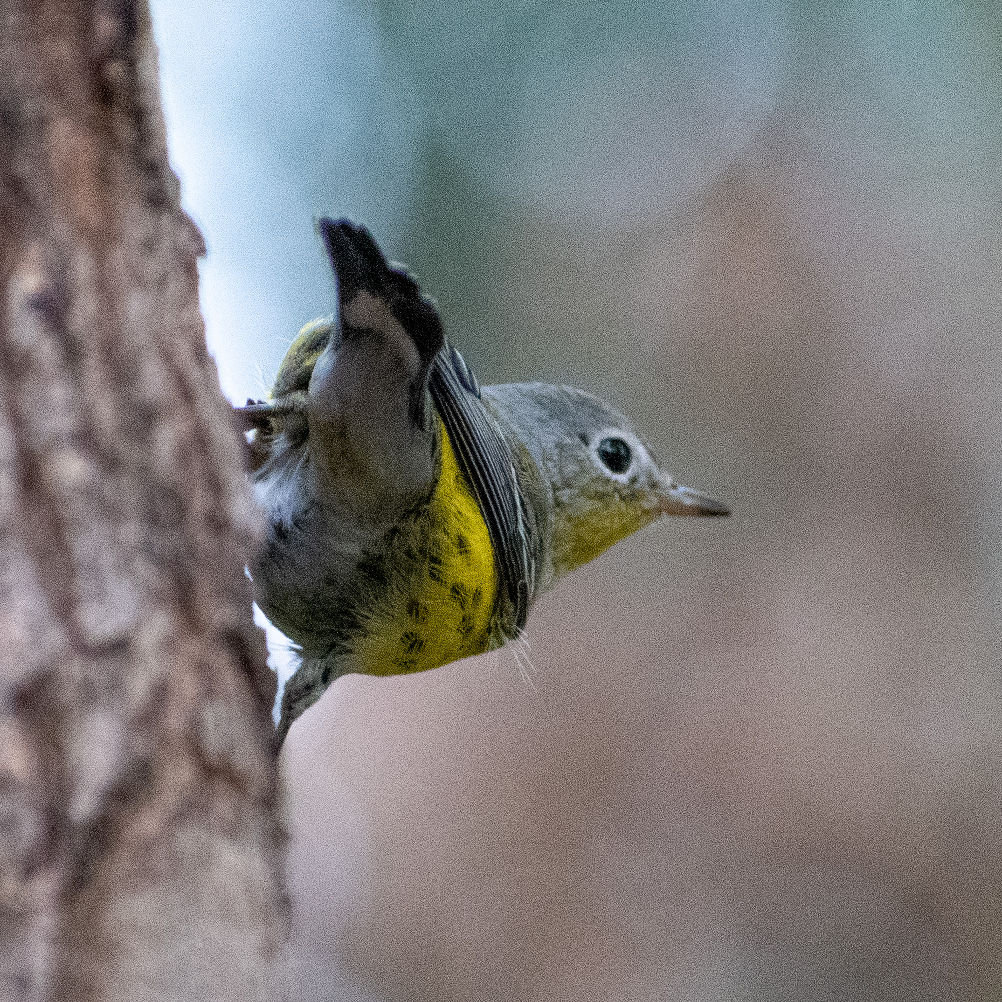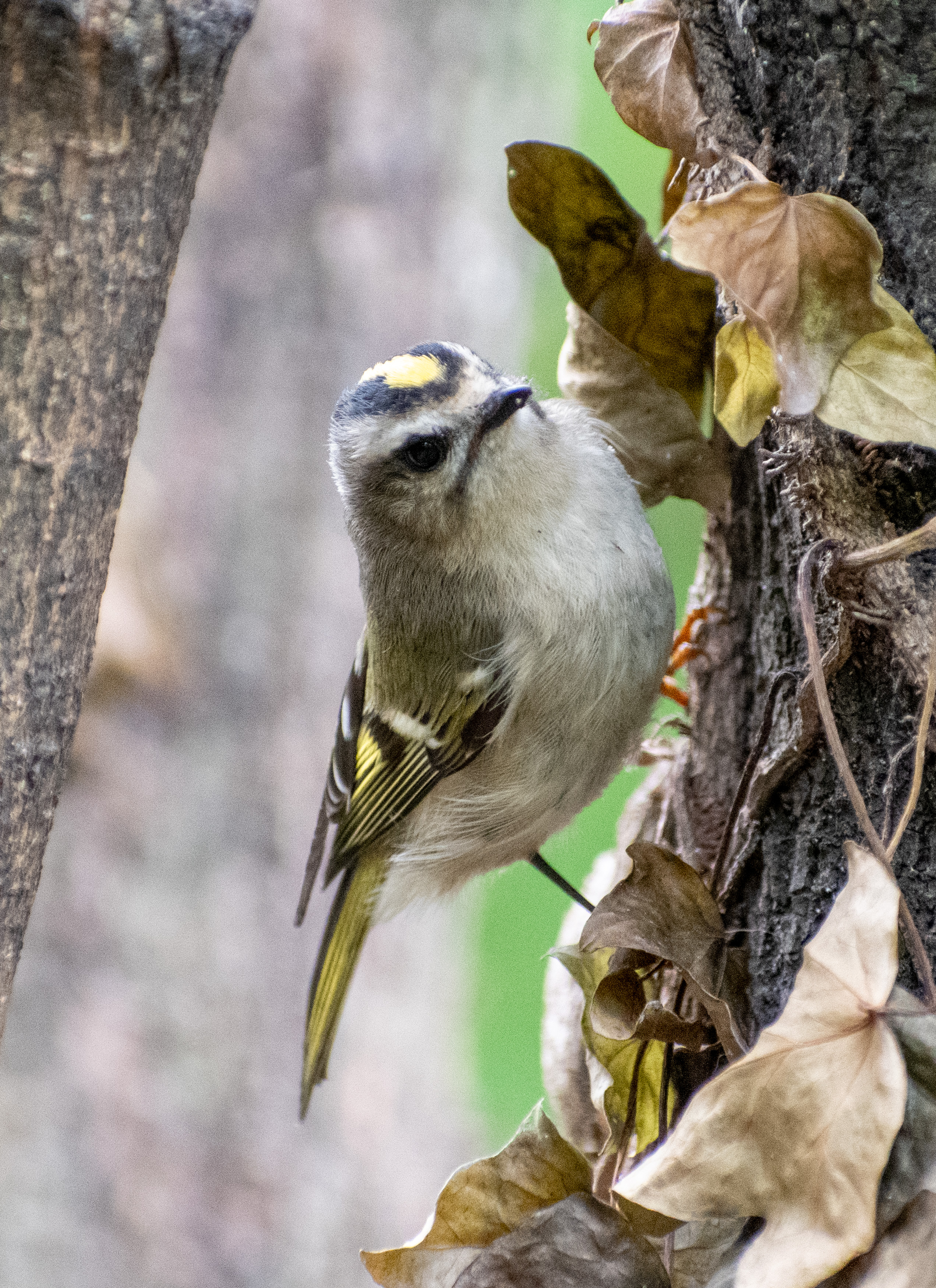 Near the dog beach, in Prospect Park, the trees were swarming today with ruby-crowned and golden-crowned kinglets, in such numbers that they seemed oblivious to the presence of mere humans.