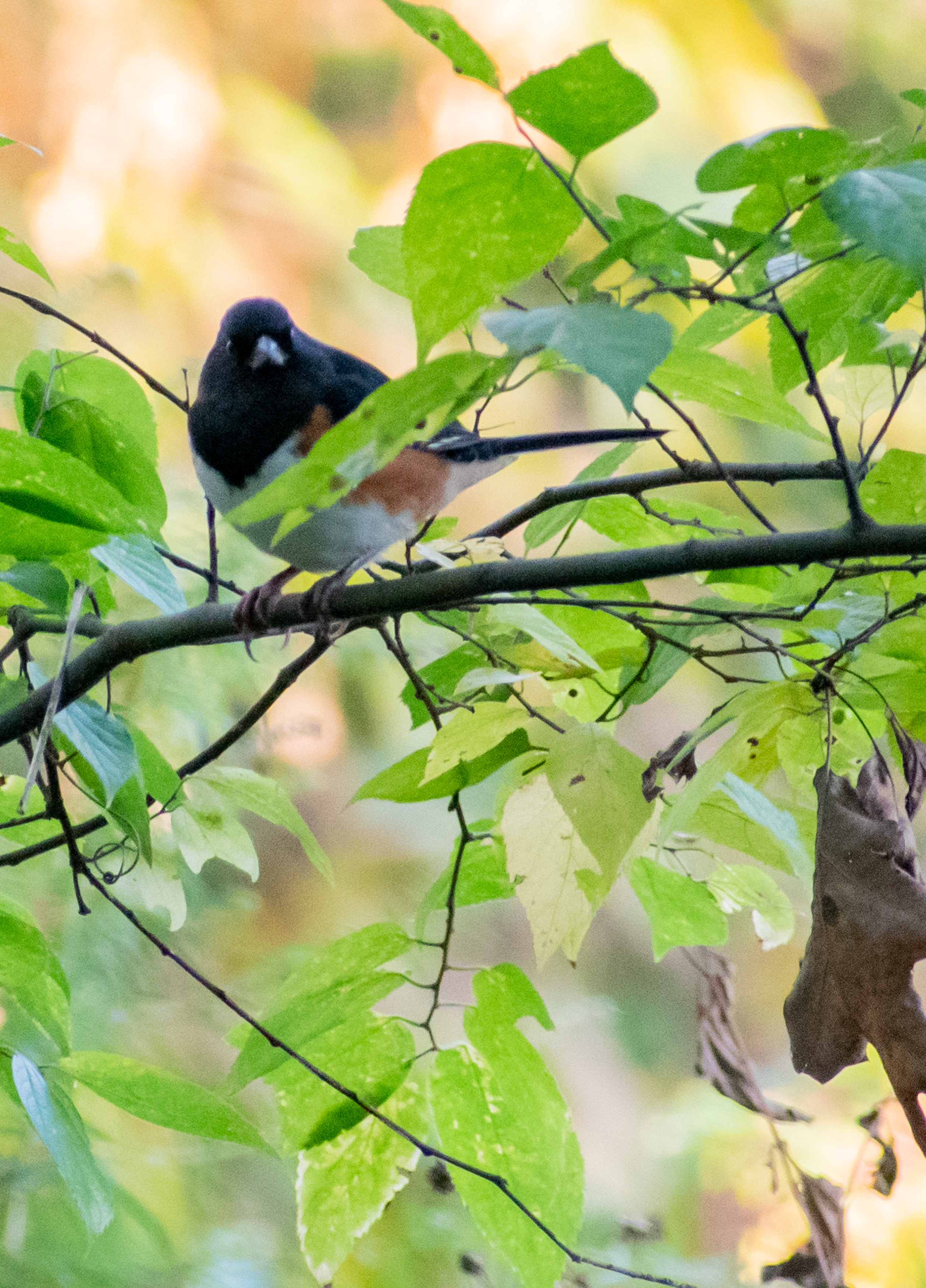 Prospect Park, 10/14/2020 I think the little white dot above and to the right of the Moon is Venus. It’s one of the planets, at any rate. This isn’t a great photo, but I think it’s the first Eastern towhee I’ve seen:
