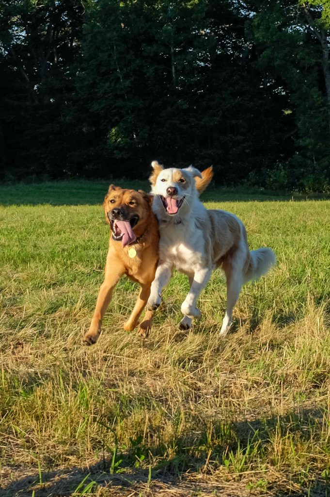 He was the fastest animal I was ever friends with. I used to think, as I watched him swoop in wide, easy circles around me in the park, that it must be from watching animals move that the idea of superpowers came to the writers of comic books. When I threw his favorite toy for him, a squeaky plastic squiggle with a knotted rope tail, he and the toy reached the spot where it was going to land at the same time. Once he grew into himself, he was all legs, and he always made a point of greeting greyhounds, which made me wonder if he had greyhound in him. People asked if he was a Carolina dog, which according to myth (but not, alas, genetic analysis) is the only surviving aboriginal dog breed in North America. His coloring matched the breed, as did his personality: restless, fast, an aptitude for pursuit. When he was young, I let him chase squirrels, until one day he overtook one. He lay on top of it for a moment, looking at it, puzzled, not sure what to do next. I called Toby, and the squirrel got away. That was the last one I let him chase.