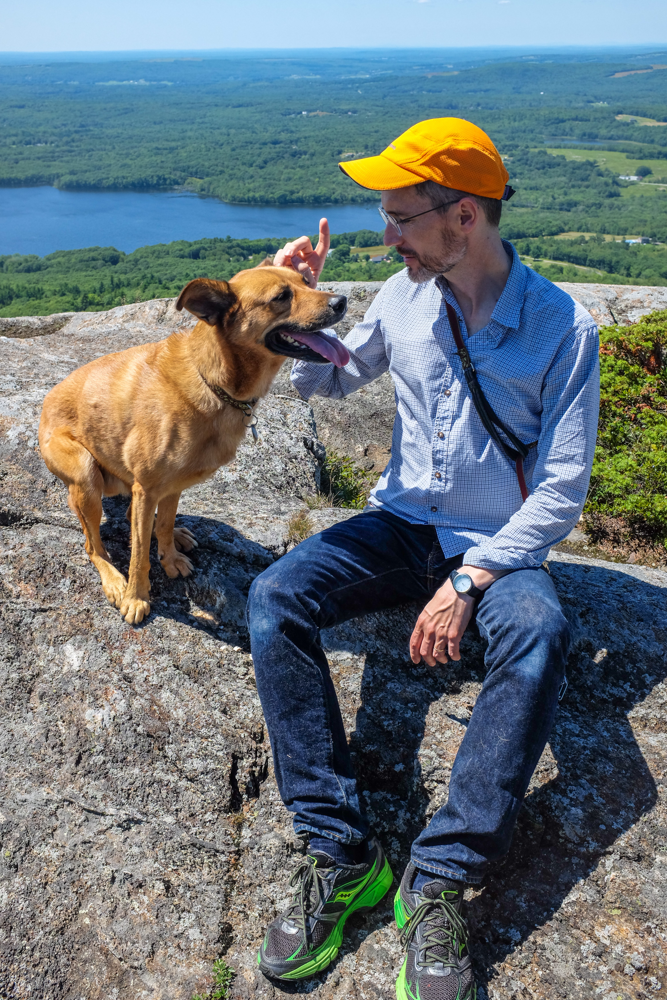 His focus, instead, was on people. One of his favorites was Jimmy, a retired cook who sometimes worked as a security guard at Yankee Stadium. Jimmy watched the women’s softball games for years from a bench in the corner of Prospect Park’s ballfields, with his own dog and a few friends, and Toby always insisted on stopping to visit with them. A nurse who saw us from afar while walking her and her wife’s dog came up one day to confess she had a crush on Toby. Among his earliest friends were a dancer, his husband in finance, and their son, who must have been in preschool when we met and is finishing high school now. The boy changed so much over the years that I sometimes had trouble recognizing him but Toby never did. In his last years a woman who owned two chihuahuas used to give him homemade sweet-potato-and-flaxseed treats. I can’t list all Toby’s friends, because there were just too many. It sometimes felt as though Toby were a celebrity, and Peter and I were his entourage. Which is making a joke of it: it also felt as though Toby was a gift that we were giving to everyone we met, because when we walked through the park with him, it felt like we were distributing happiness. He literally smiled. “He’s smiling at me,” people often said aloud, as if they found it hard to believe. They also often said, “Those ears.” He was especially gentle with children. He would let them do anything. The only concern I ever had was that he would waggle his enormous tail so hard that he would inadvertently topple one over (which never happened). I would tell him to lie down, and he would let them rub his belly. Usually he gave them a kiss on the face or hands.