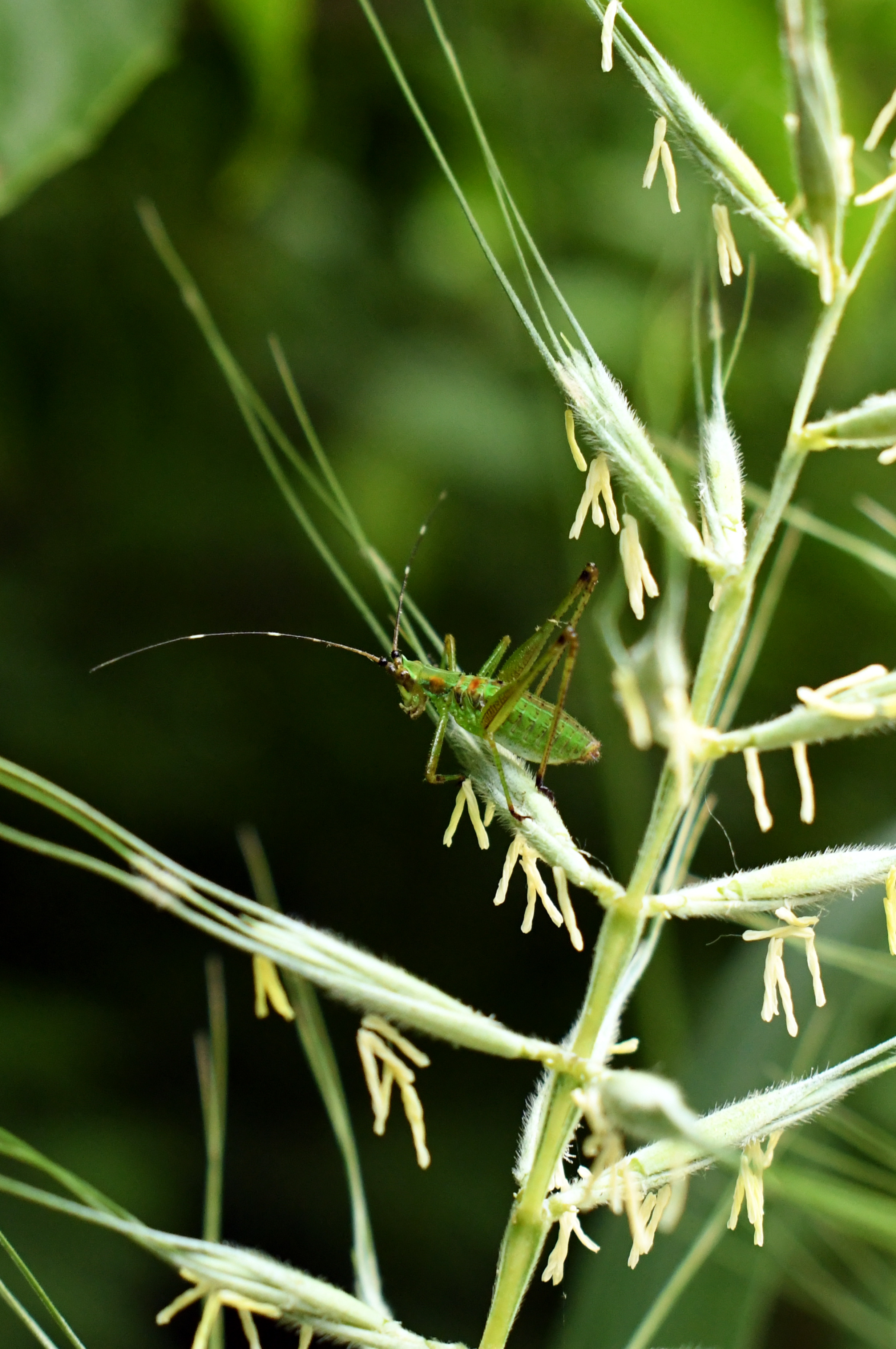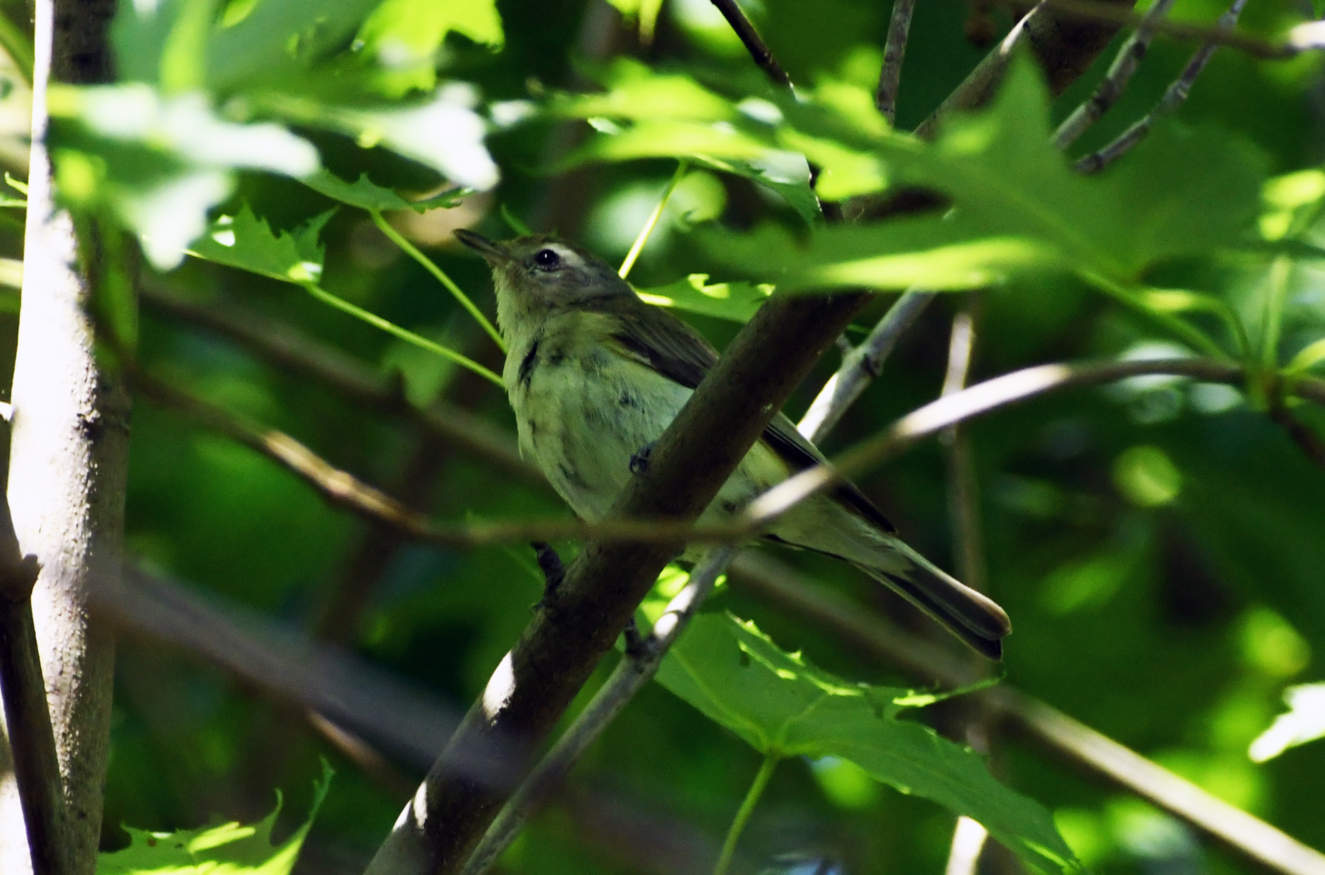 Last week a fellow birder showed me photos that he had taken of green heron chicks in a nest. He told me where the nest was, roughly, but I wasn’t able to find it that day. This morning, a fellow dog walker who knows I take bird pictures flagged me down to tell me she had seen the nest, too, and explained the location a little more clearly. But once I got to the spot, all I could find was a paper wasps’ nest, busy with traffic. (Another kind of wasp, Eastern cicada killers, were out in a field in large numbers, busy not with a nest but with one another; maybe they were mating?) At last I did see a green heron, preening herself, in a tree between the path where I was standing and the water’s edge. “What a beautiful dog,” a man in a cap said, of Toby, who was waiting patiently, looped to a fence post, and after petting Toby, he joined me in trying to photograph the heron. After he left, a few bird photographers with professional tripods and lenses walked by. I asked one if he knew where the nest was; he admitted that there was one, but would only say that it was “around here,” and then added that the heron had flown away, in a tone that sounded meant to be discouraging. I kept looking. Finally another dog walker saw me peering into the trees, asked if I was looking for the heron’s nest, and pointed it out to me—a darkened smudge fairly high up.